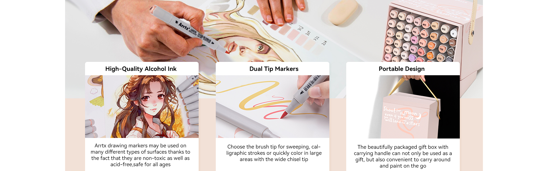 Arrtx OROS 66 Pastel Colors Alcohol Markers Paint Pen Set