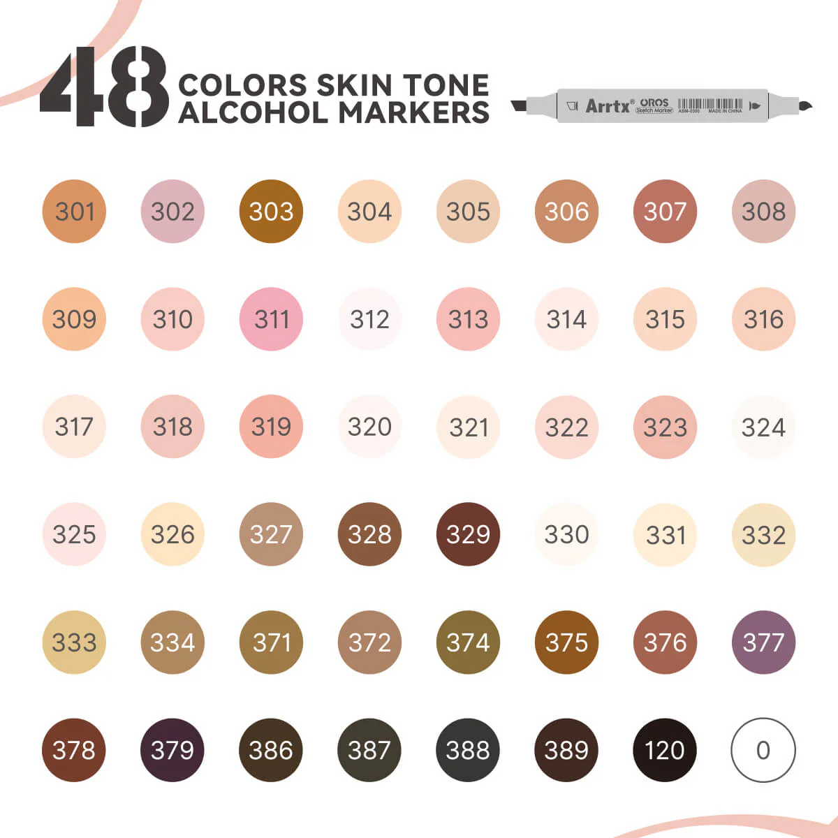 Arrtx OROS 48 Skin Tone Colors Alcohol Markers Paint Pen Set